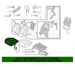 2021-24, right side, seat cushion components, with heater, gray. With hybrid, right side, seat cushion components, with heater, gray.