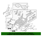2021-24, right side, seat cushion components, front. 2021-24 with hybrid left side seat cushion components. front. 2025 with hybrid left side seat cushion components. 2025 with hybrid right side seat cushion components.